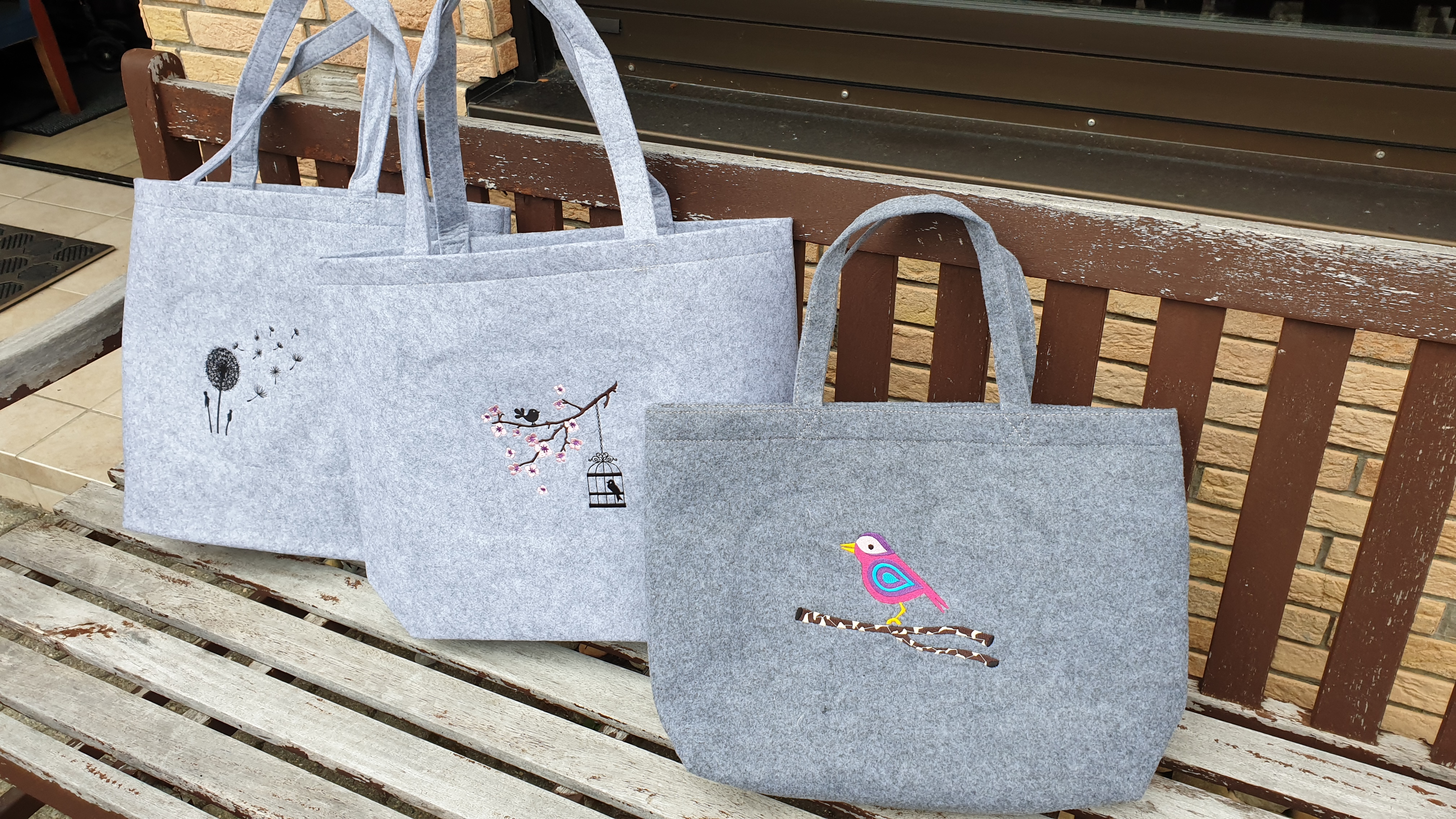 Modisch gestaltete Filztaschen von LeLa. Und das Tolle daran: es wird mit Ihrem Wunschnamen oder einem Motiv bestickt! | |